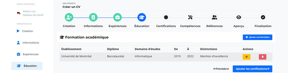 Une plateforme intuitive et efficace. Je recommande à tous ceux qui cherchent à se démarquer avec un CV professionnel.